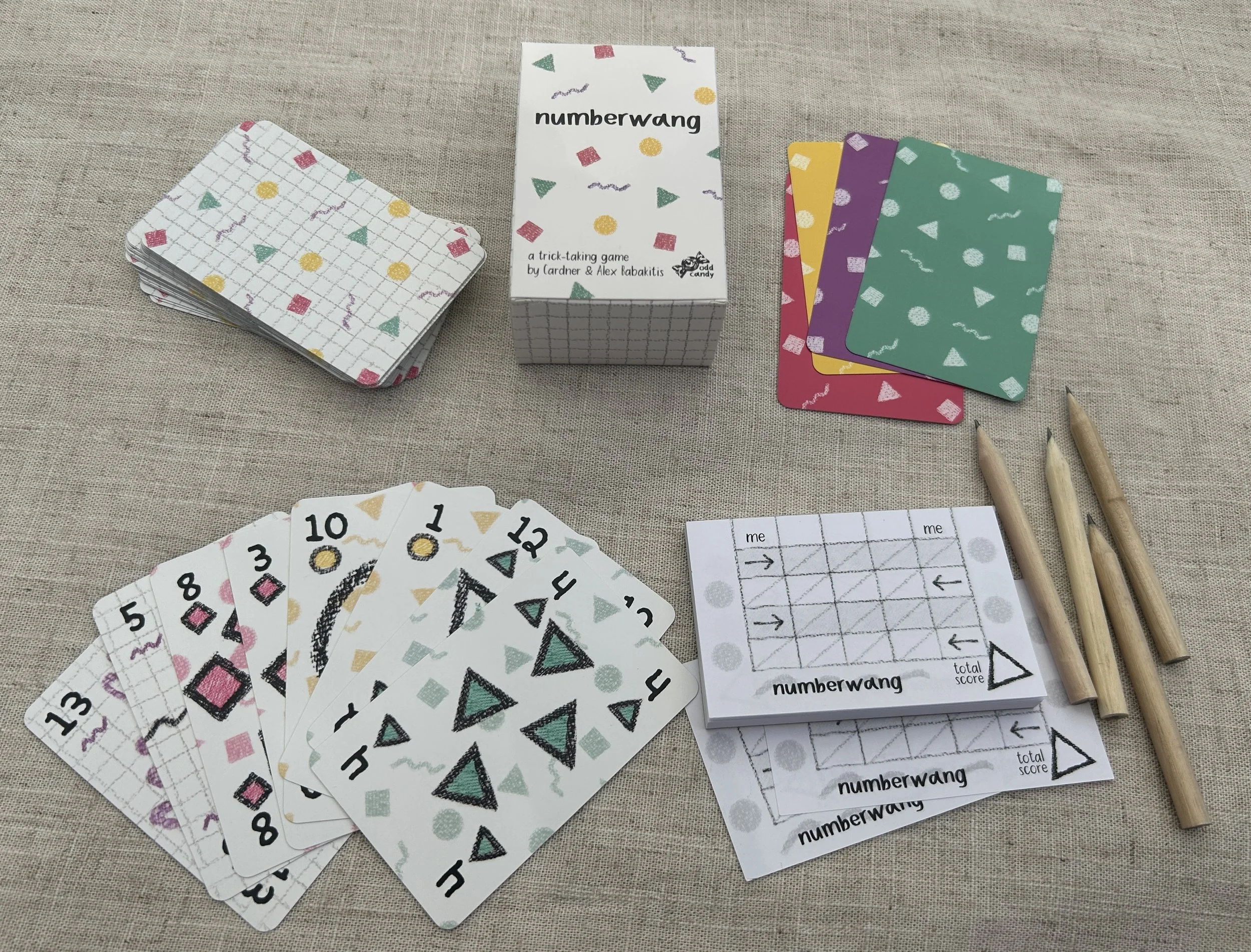 Numberwang is a deceptively simple trick-taking game with shared incentive bidding.